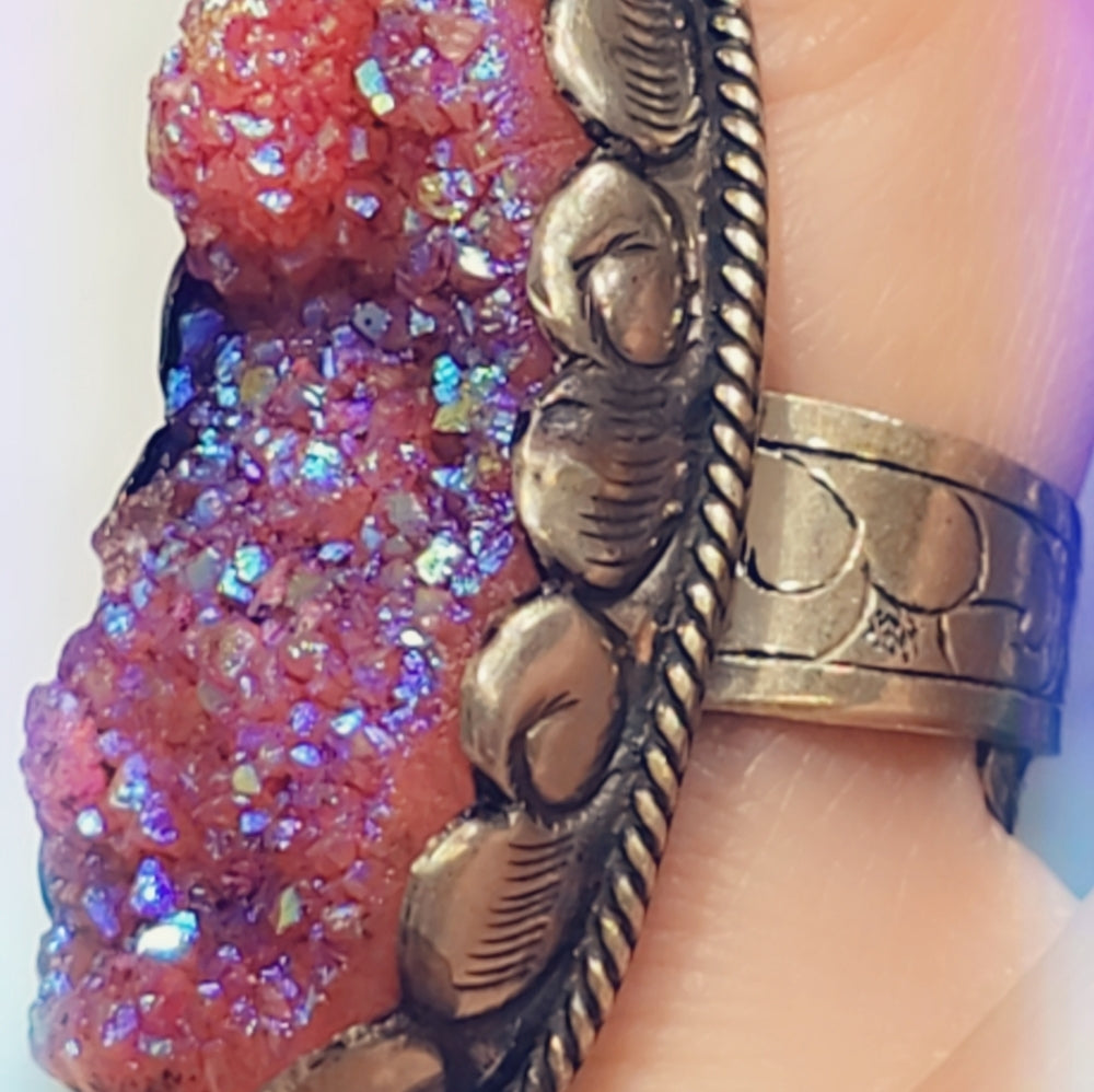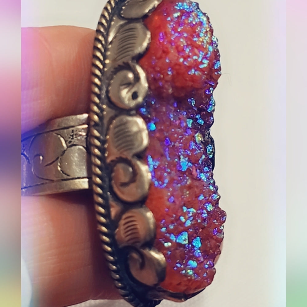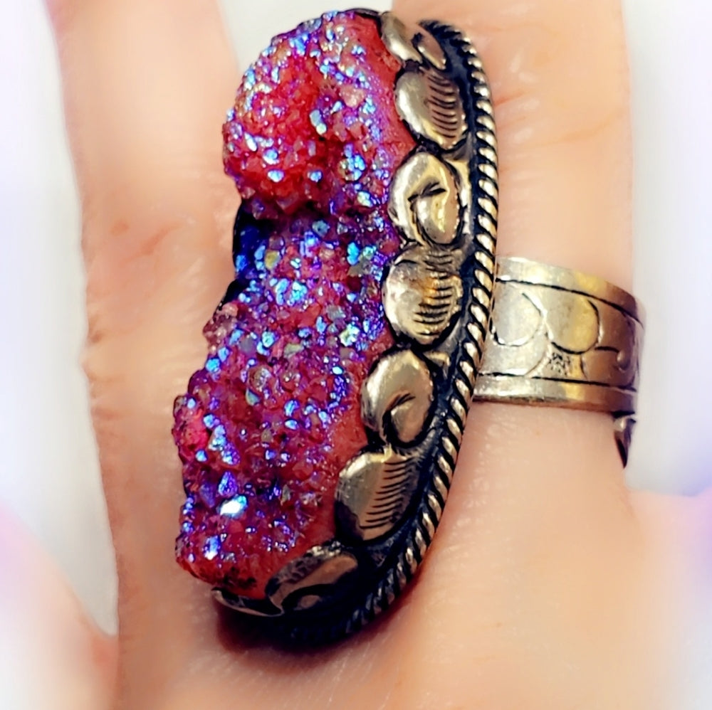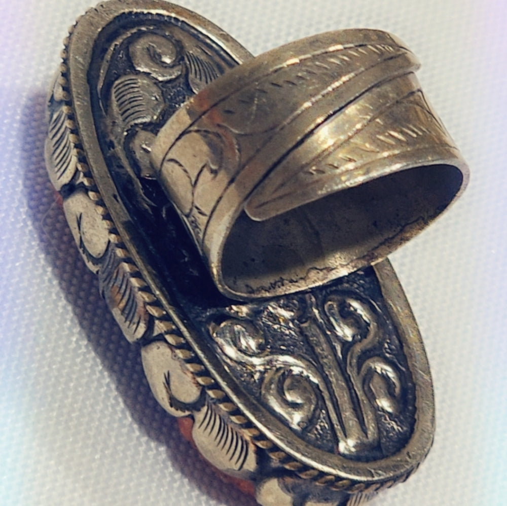 Druzy Ring Carved Handcrafted Tibetan Ring